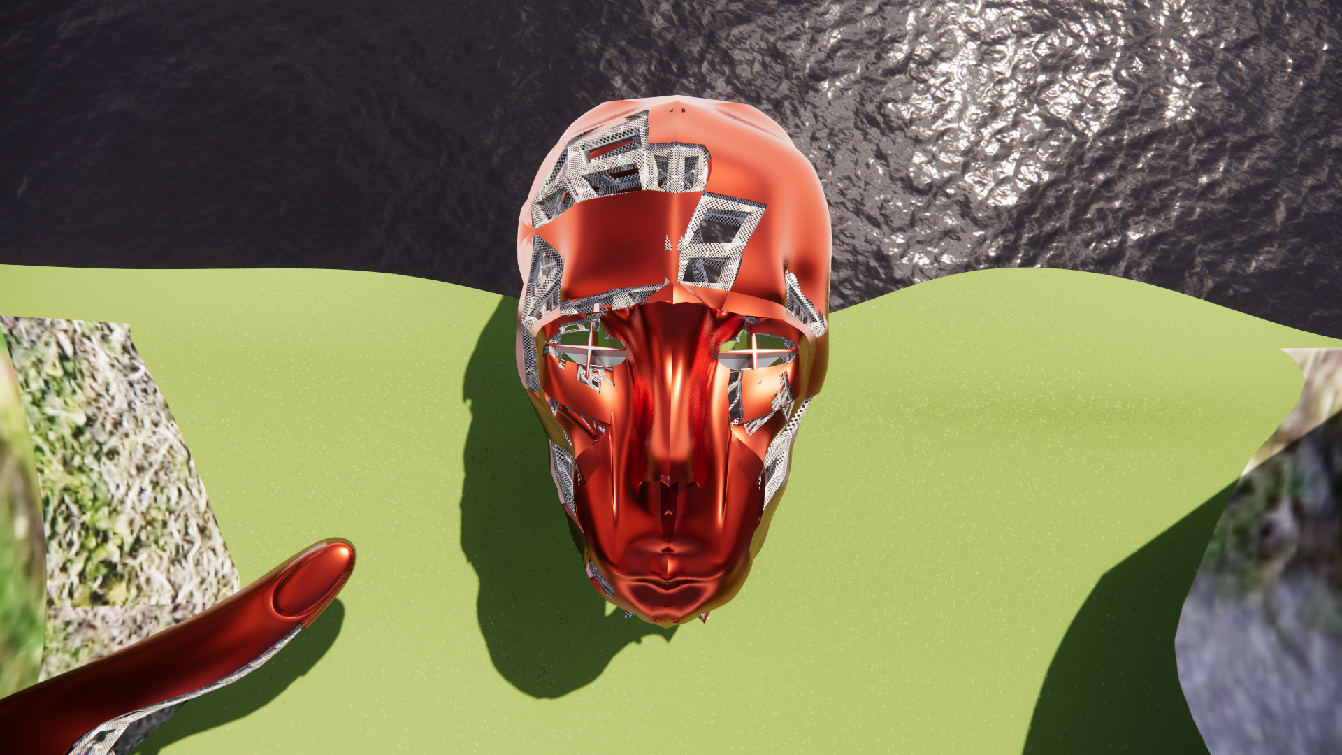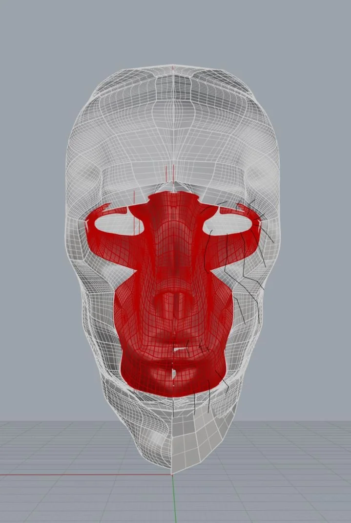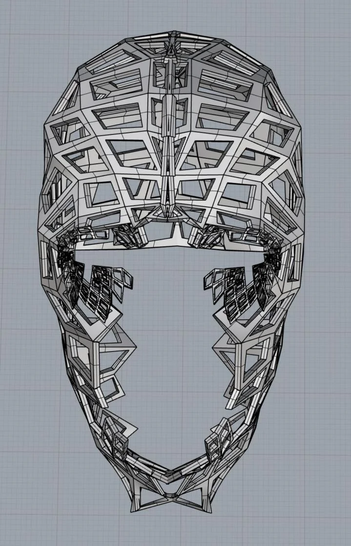 I created two models, one being of the hands and face, and the others being complex parametric designs in those shapes. Once finished it looked as though there was wiring keeping these metal sheets